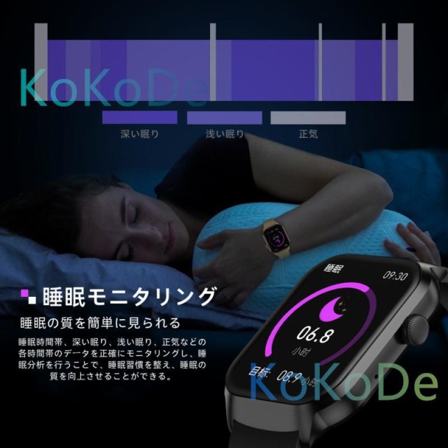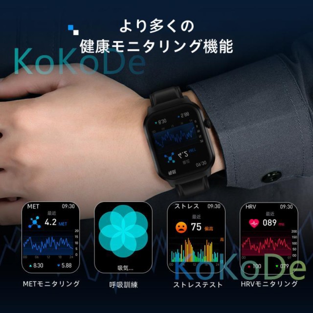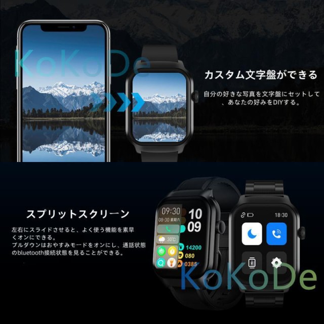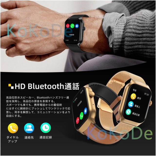 AI診断値、血中酸素、通話機能付き、カロリー、24時間や心拍数などの測定機能を一瞬で確認でき、スマホと同期した後アプリで健康状態データを一目で分かります。