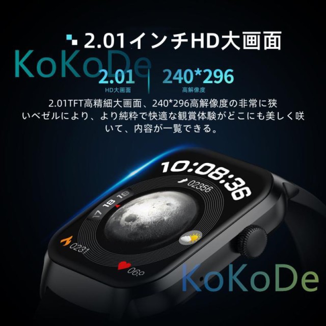スマートウォッチ 血圧測定 2025最新 心拍数 血中酸素 通話機能 日本製センサー 2.01大画面 HRVモニタリング カロリー 運動モード 睡眠管理 IP67防水