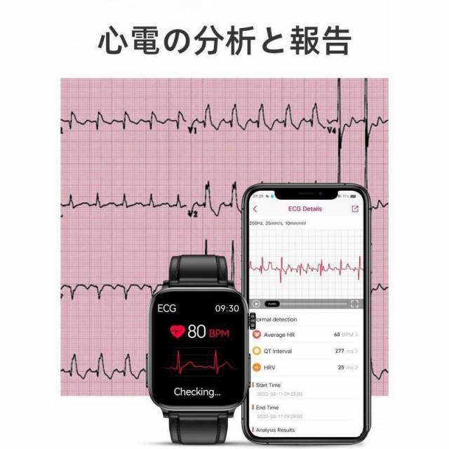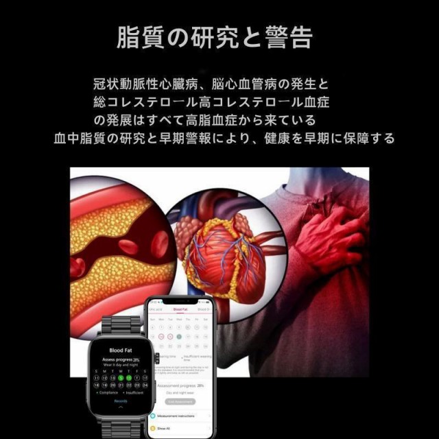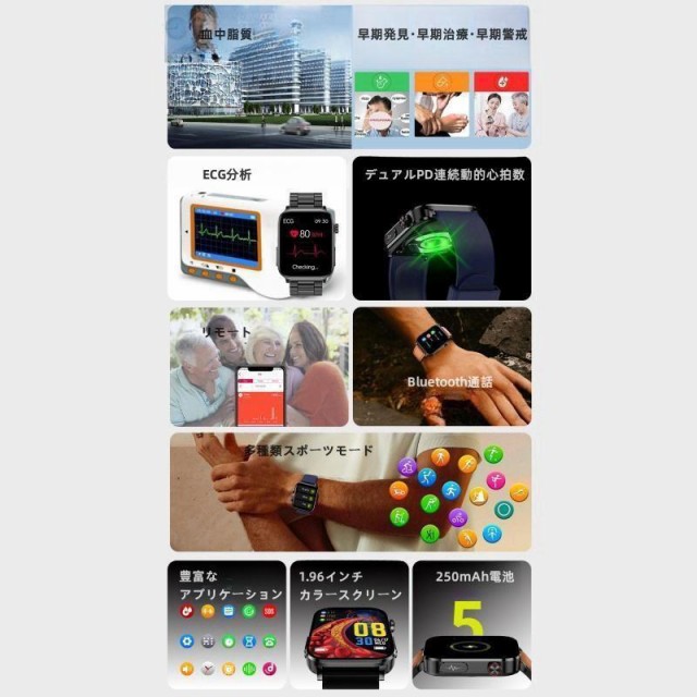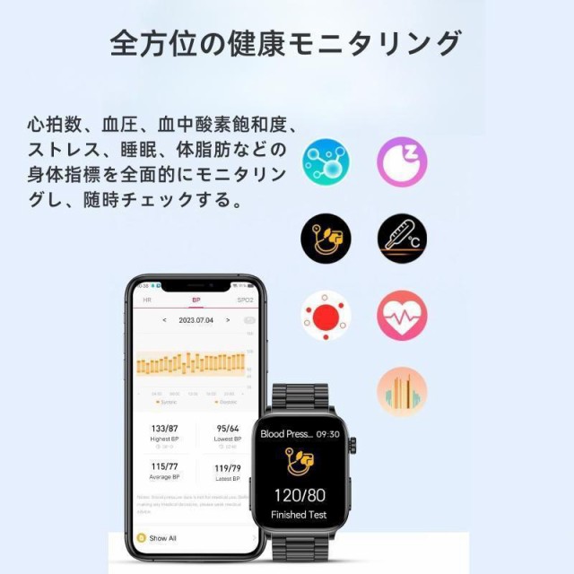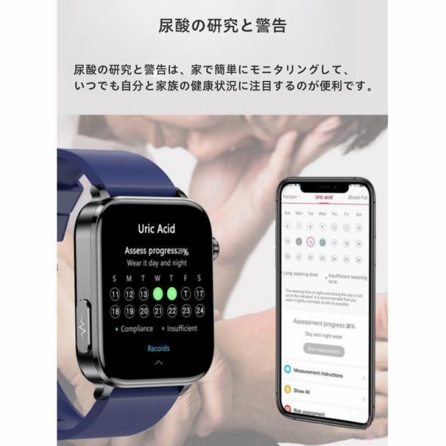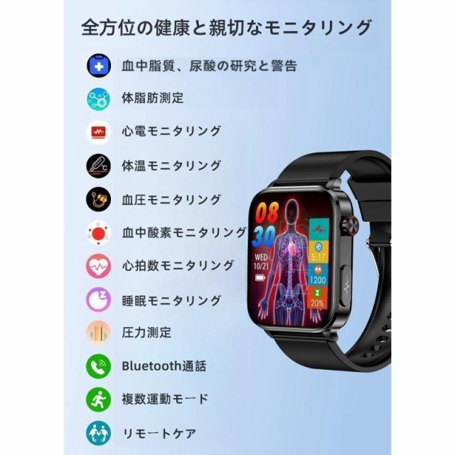 スマートウォッチ 日本製センサー ECG心電図測定 血糖 通話機能 高精度心拍数 体温 医療レベル 睡眠検測 血中脂質 尿酸測定 着信通知 天気予報 腕時計 ギフト
