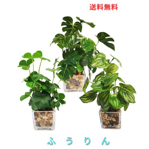 Lilizero 光触媒 フェイクグリーン 3点セット モンステラ クローバー スイカの葉 フェイク 観葉植物 卓上 鉢植え 造花 人工観葉植物 イン