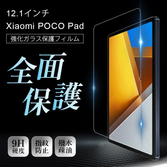12.1インチ Xiaomi POCO Pad 強化ガラス保護フィルム シャオミ ポコ パッド スクリーン保護シート ガラスシール タブレット用 高透過率 0.3mm 超薄型 表面硬度9H 高感度タッチ 耐衝撃 摩擦防止 割れにくい 指紋防止 スクラッチ防止 気泡レス