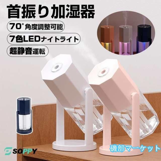 加湿器 おしゃれ 超音波式 首振り 角度調整可能 240ml 容量 卓上 小型 ペットボトル USB給電 LEDライト 連続加湿8時間 ミニサイズ 2種加