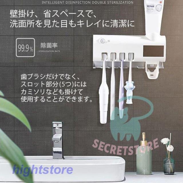 最新発売 UV歯ブラシ除菌器 99.9%除菌 UV紫外線歯ブラシ消毒器 自動除菌 壁掛け歯ブラシスタンド 歯ブラシホルダー 歯磨き粉ディスペンサー 熱感センサー カビ防止限定セール