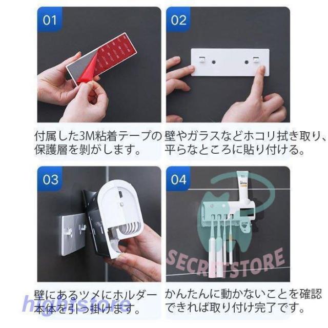 UV歯ブラシ除菌器 99.9%除菌 UV紫外線歯ブラシ消毒器 自動除菌 壁掛け歯ブラシスタンド 歯ブラシホルダー 歯磨き粉ディスペンサー 熱感センサー カビ防止