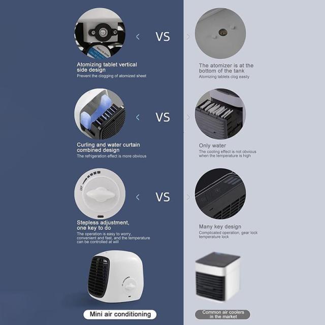 エア クーラー デスクトップ水冷エアコン ファン ミニ ポータブル ファン 製品の説明: ファンには 3 つのレベルの風があり、上下に調整できます。ブラインドで風向きを調整して、ニーズに合わせて調整できます。涼しい風はあなただけのものです。内部の水タンクに氷水を入れると、ファンが涼しい風を吹き出して空気に潤いを与え、ドア内の温度を下げて疲労を軽減します。コンピュータで充電できるUSB充電ポート、モバイル電源と車。バッテリー切れの心配はありません。冷却ファンは作業中の騒音が非常に少ないため、静かで快適な休憩や作業環境を提供できます。水冷ファンはサイズが小さく、テーブルやベッドサイドに簡単に配置でき、スペースが小さく、寝室、オフィス、車での使用に適しています。仕様:2-in-1 デスクトップ エアコン ファン 水タンク容量: 280ml 定格電力: 3w-10w 入力電圧: USB 5V/2A 適応入力: 110v~240v 50-60Hz製品には以下が含まれます: 1x 冷却ファン 1x USB 充電ケーブル