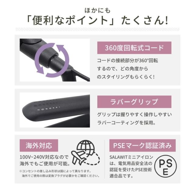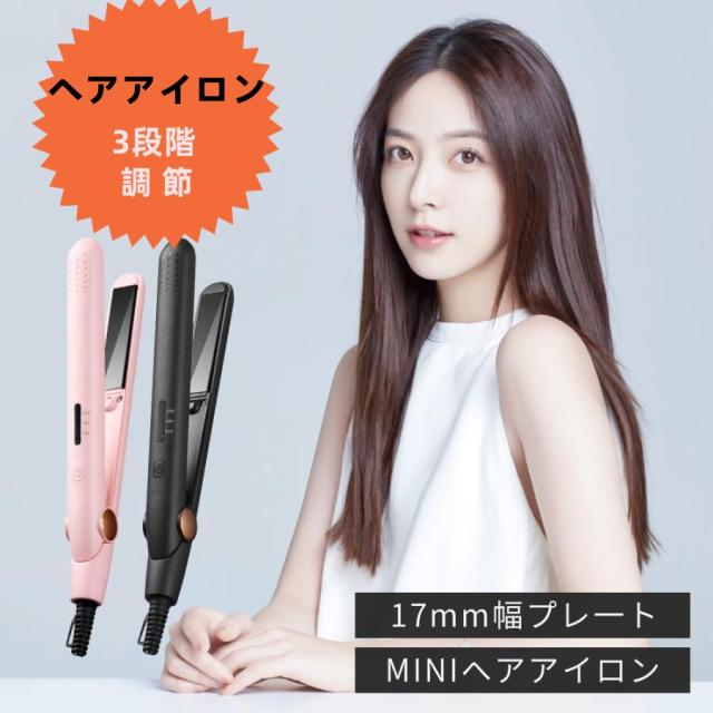 ヘアアイロン ストレート コテ アイロン 3段階調節 ミニ コンパクト 前髪 小さい 旅行用 トラベル カール ヘアーアイロン