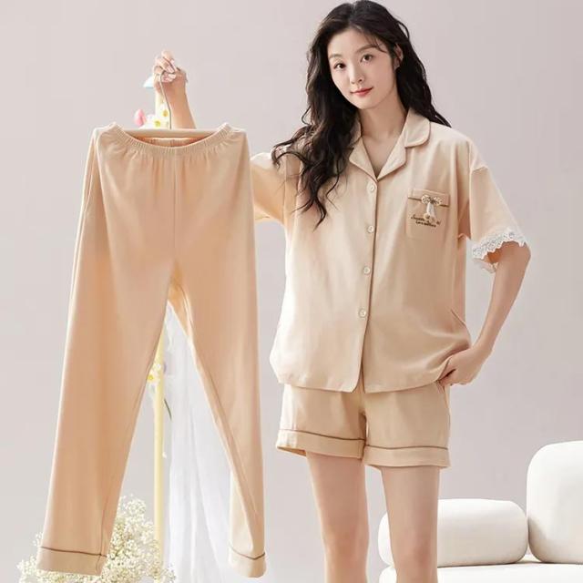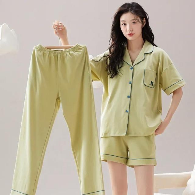 前開き ルームウェア 上下3点セット 長ズボン パジャマ 綿 短ズボン 春 夏 高校生 半袖 柔らかい 可愛い 薄手 レディース 部屋着 修学旅行 肌にやさしい ゆったり ホームウェア