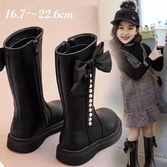 ロングブーツ ブーツ ファスナー付き 黒 ミドル丈 裏起毛 靴 キッズ イベント 韓国 ファッション 可愛い 子供 春秋冬 シューズ ジュニア ベビー 子供ブーツ 防寒 フォーマル靴 おしゃれ
