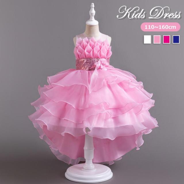 ドレス 4色 子供 ピアノ発表会 子供 キッズ ドレス 新作 ローズ ピンク ブルー ホワイト 110 120 130 140 150 160
