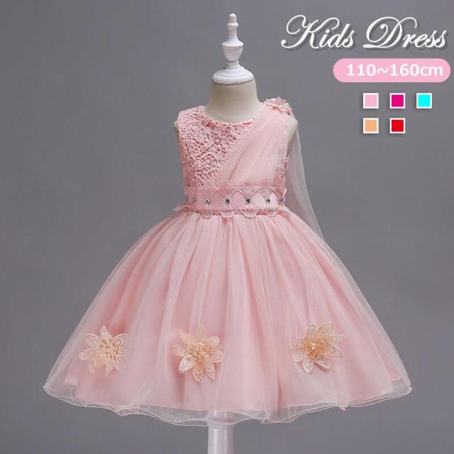 ドレス 5色 子供 ピアノ発表会 子供 キッズ ベビー マタニティ 続々入荷中 ピンク ブルー レッド イエロー ローズ 110 120 130 140 150 160