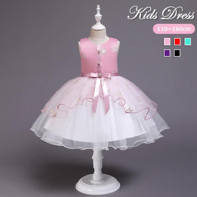 ドレス 5色 子供 ピアノ発表会 子供 キッズ ドレス 続々入荷中 ピンク レッド パープル グリーン ブラック 110 120 130 140 150 160