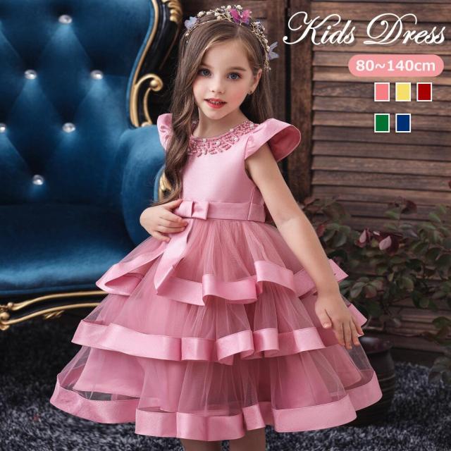 ドレス 5色 子供 ピアノ発表会 子供 キッズ ベビー マタニティ 新作 ピンク レッド イエロー ブルー グリーン 80 90 100 110 120 130 140