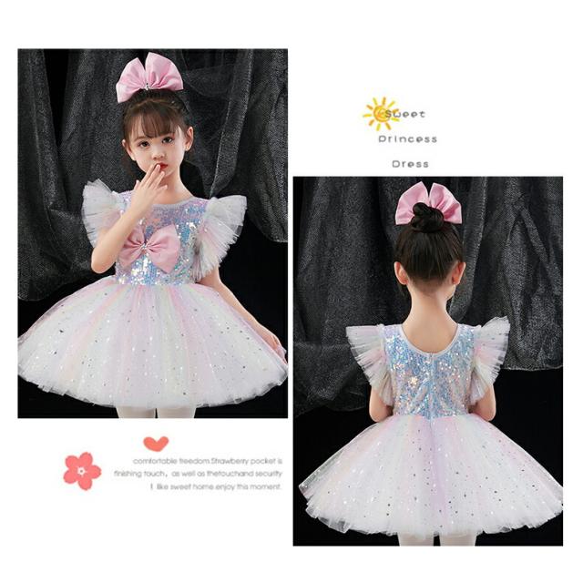 ドレス 4色 子供 ダンス衣装 子供ドレス チュールドレス 可愛い キッズ キッズドレス ワンピース スパンコール キラキラ ダンス ふんわり フォーマル 女の子 チアガー 学園祭