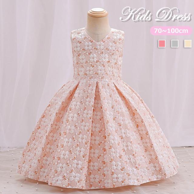 ドレス 3色 子供 ベビー 子供ドレス キッズ ドレス 早い者勝ち ピンク グレー シャンパン 70 80 90 100