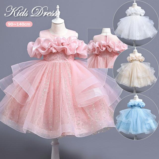 ドレス 6色 子供 ピアノ発表会 子供 キッズ ドレス 続々入荷中 ピンク ブルー シャンパン レッド グリーン ホワイト 90 100 110 120 130 140