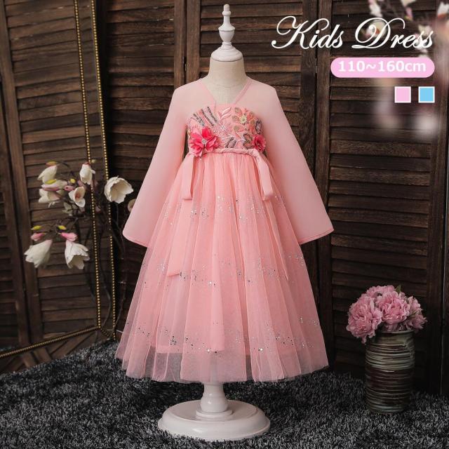 ドレス 2色 子供 ピアノ発表会 子供ドレス 発表会ドレス 可愛い キッズ キッズドレス ワンピース 中華風 フラワーガール 演奏会 発表会 フォーマル 女の子 ロングドレ 子供ワンピース