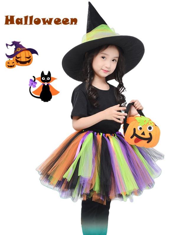 ハロウィン 魔女 姫系 悪魔 女の子 キッズ ベビー マタニティ 続々入荷中 半袖・グリーン+パープル 半袖・オレンジ+パープル 長袖・グリーン+パープル 長袖・オレンジ+パープル 90 100 110 120 130 140 150