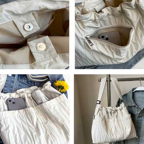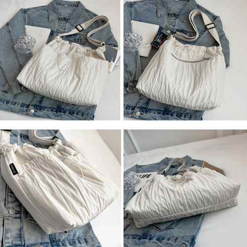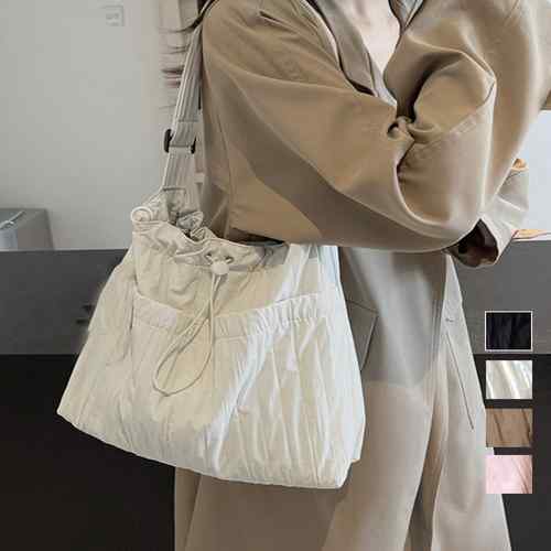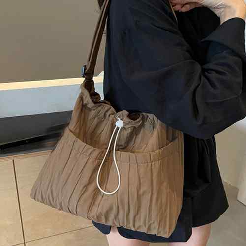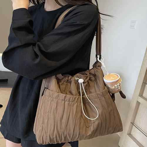 肩掛けバッグ A4収納可能 手提げ鞄 韓国風 大人かわいい マザーズバッグ ドローストリング付き 斜め掛け おしゃれ シワ加工バッグ 軽量 大きめbag 人気 2way鞄