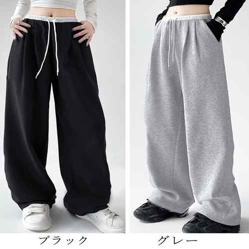 ワイドパンツ ゆったり 部屋着 ウエス レディースファッション 新登場! ブラック グレー