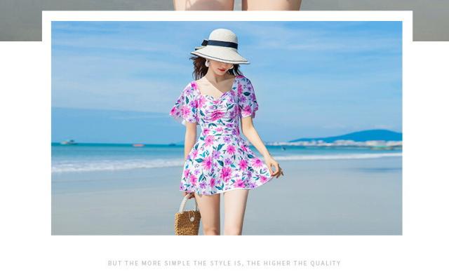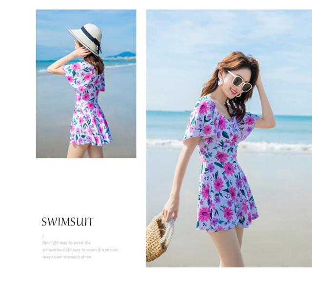 水着 レディース ワンピース水着 体型カバー水着 花柄 露出控えめ オトナ女子 20代 30代 40代 ママ水着 スイムウェア オールインワン ウエスト 太もも インナーパンツ付き パッド付き お尻