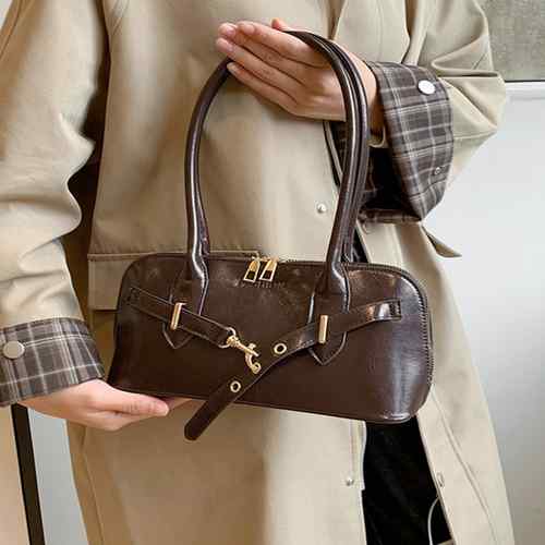 トレンド感のあるロングハンドルのフェイクレザートートバッグ