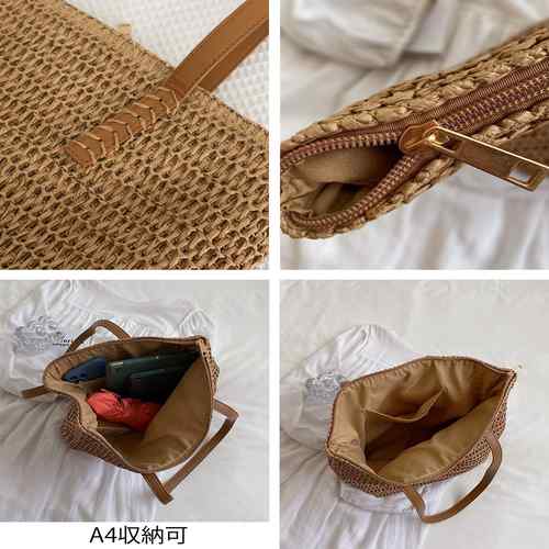 トートバッグ レディース リゾート 手提げバッグ ビーチバッグ 花火大会 夏 肩掛けバッグ 軽量 編みかご鞄 ストローかごバッグ 旅行手提げバッグ ナチュラルサマー鞄 休日コーデ