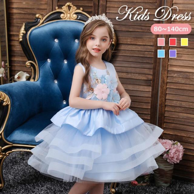 ドレス 5色 子供 ピアノ発表会 子供 キッズ ベビー マタニティ 早い者勝ち パープル ローズ ピンク イエロー ブルー 80 90 100 110 120 130 140
