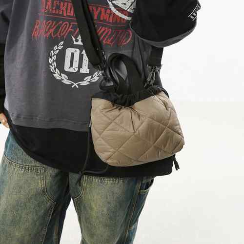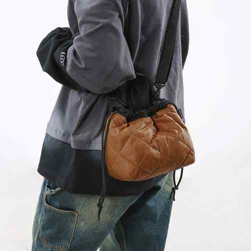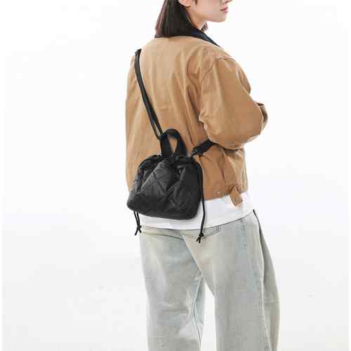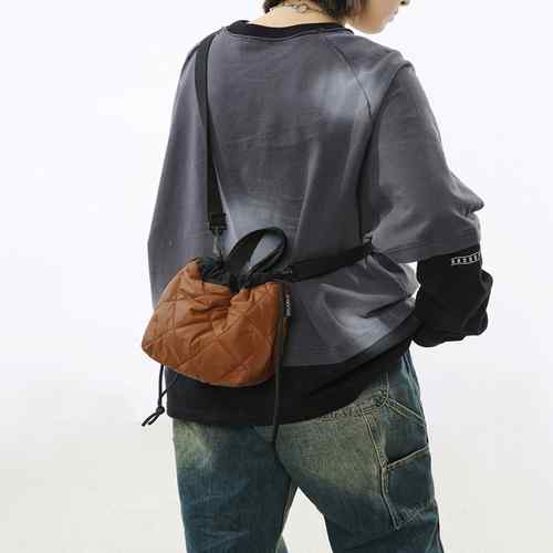 レディース ふかふか巾着バッグ 軽量ナイロンバッグ 使いやすい 小さめサブバッグ 軽いボディバッグ ミニハンドバッグ黒 男女兼用ペアバッグ 韓国ファッション鞄 ユニセックス手提げ鞄