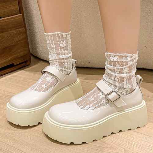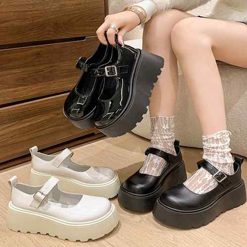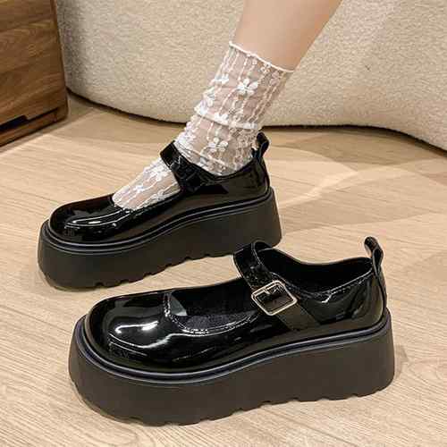 ラウンドトゥPUレザー靴 歩きやすいメイド靴 軽量メリージェーンシューズ お嬢様パンプス黒 厚底5cm プラットフォーム 身長盛れ靴痛くない ドレスシューズ脚長 エナメルコスプレ靴