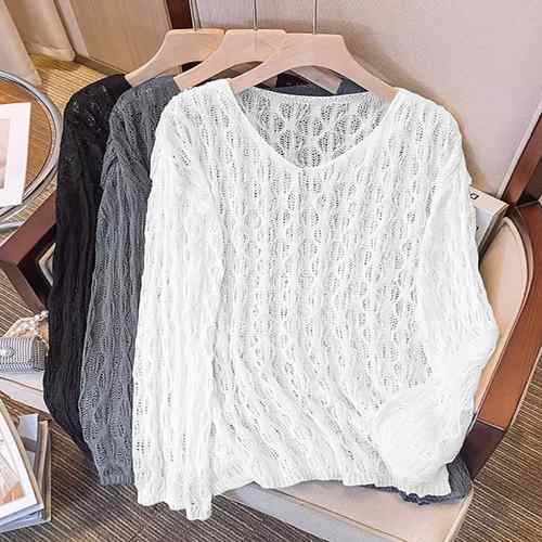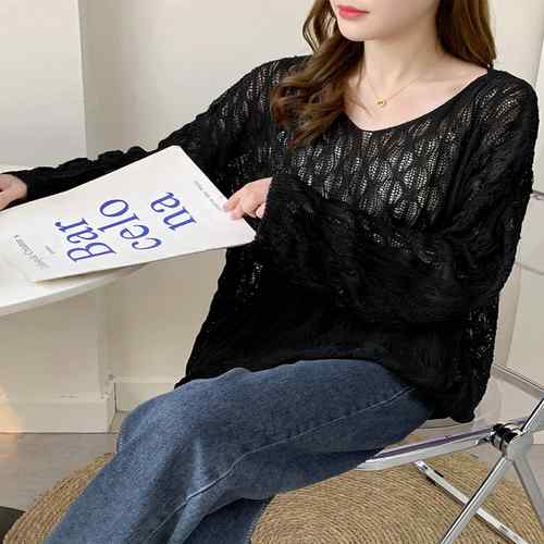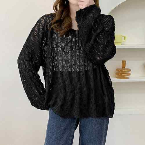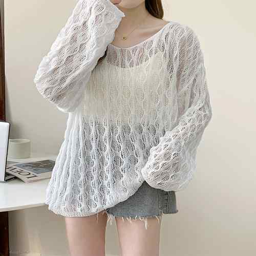 ざっくりとした透かし編みデザインが魅力的な可愛いメッシュニットトップス