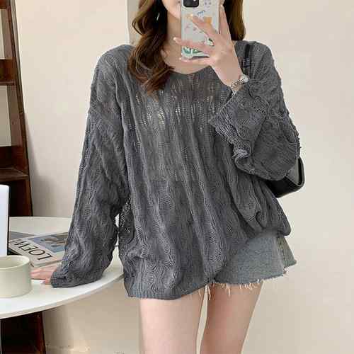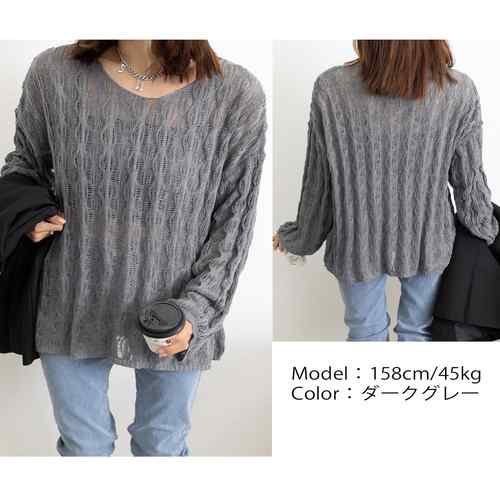 ニットトップス レディース シースループルオーバー ゆったり Vネックニットソー 重ね着 体型カバー シアーニット春夏秋 ゆるニット 着やせ こなれ感春服透け感 サマーニット肌見せ