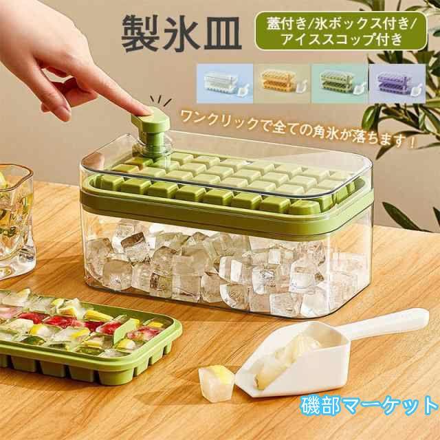 製氷皿 製氷機 蓋付き 氷トレー1/2/3層 氷ボックス付き アイススコップ付き 冷凍保存 飲み物作り 耐久性 家庭用 宅飲み お酒 角氷 製氷器 氷格 透明氷 食品級 夏