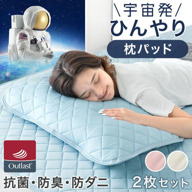 【正午〜P5%還元】 枕パッド 2枚組 接触冷感 45×65cm 洗える 《宇宙発》 アウトラスト 防ダニ 抗菌 防臭 洗える 寝具 ピローパッド ピローパット 枕パット 枕カバー 冷却マット 冷感 夏 夏用 夏寝具 涼しい 冷感 ひんやり クール 節電 かわいい