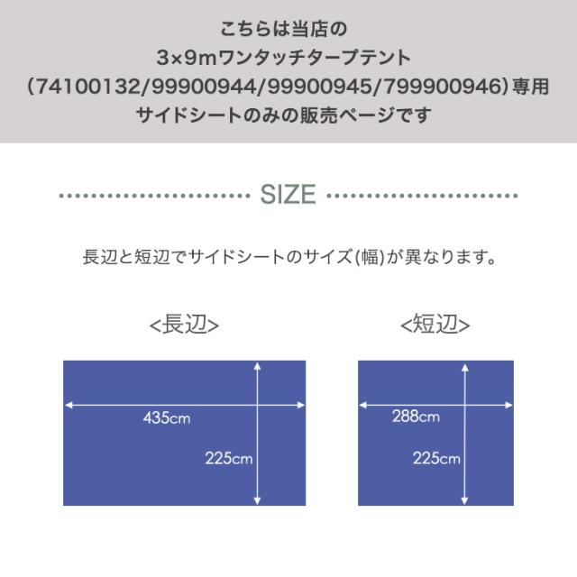 当店タープテント専用 3×9m サイドシートのみ 単品 商品番号 74100132/99900944/99900945/99900946 専用 ワンタッチタープ タープテント サイドシート