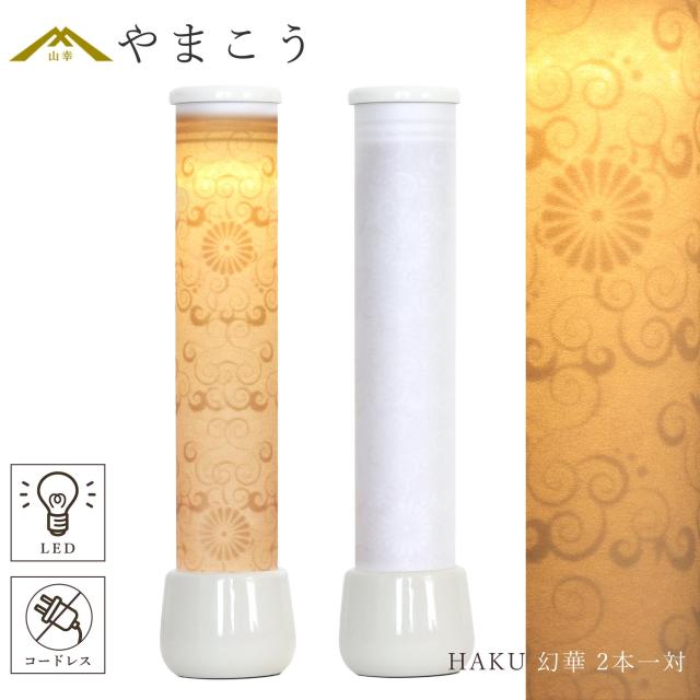 盆提灯 初盆 新盆 モダン 仏具 一対 セット オリジナル 白紋天提灯 HAKU 幻華 十六菊 ミニ 小型 電池式 コードレスLED 和 行灯 提灯 仏壇 贈り物 供物 初盆提灯 新盆提灯 神道