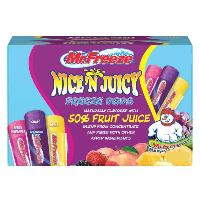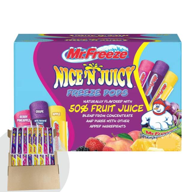 ・ミスターフリーズのアイスキャンディーは、濃縮還元果汁50%のブレンドで風味豊かに仕上げました。