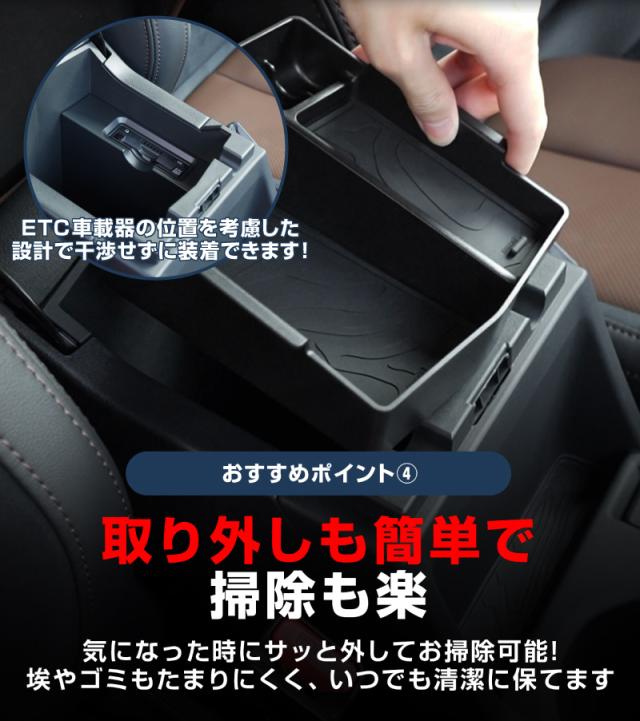 スマートフォンやサングラス、タバコなど、よく使う小物をすっきり収納でき、車内をより快適にします。