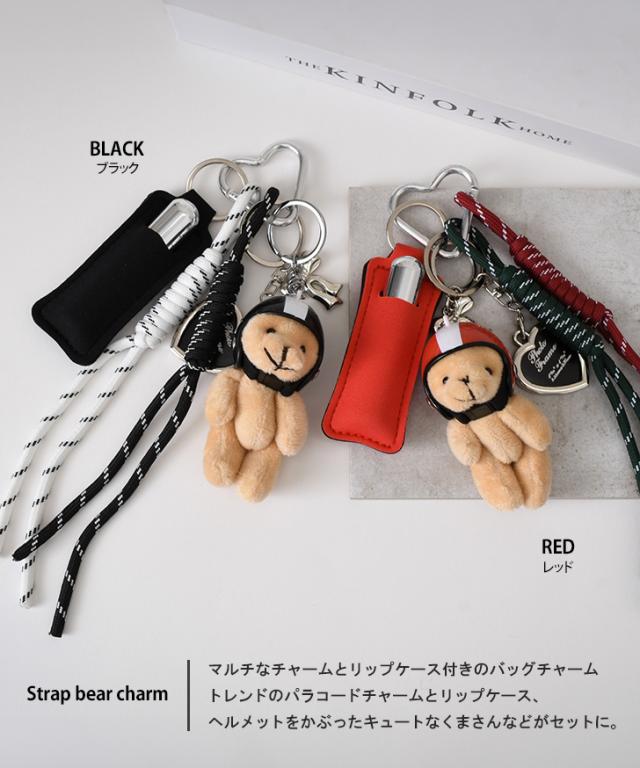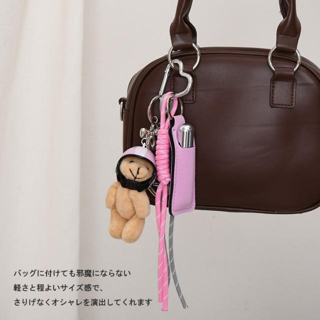 新作 リップケース付きヘルメットくまさんパラコードストラップバッグチャーム キーホルダー バッグチャーム バッグアクセサリー 紐 スマホ バッグ かわいい ぬいぐるみ セット じゃらじゃらつけ ベアー リップホルダー