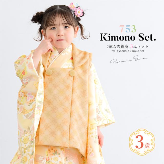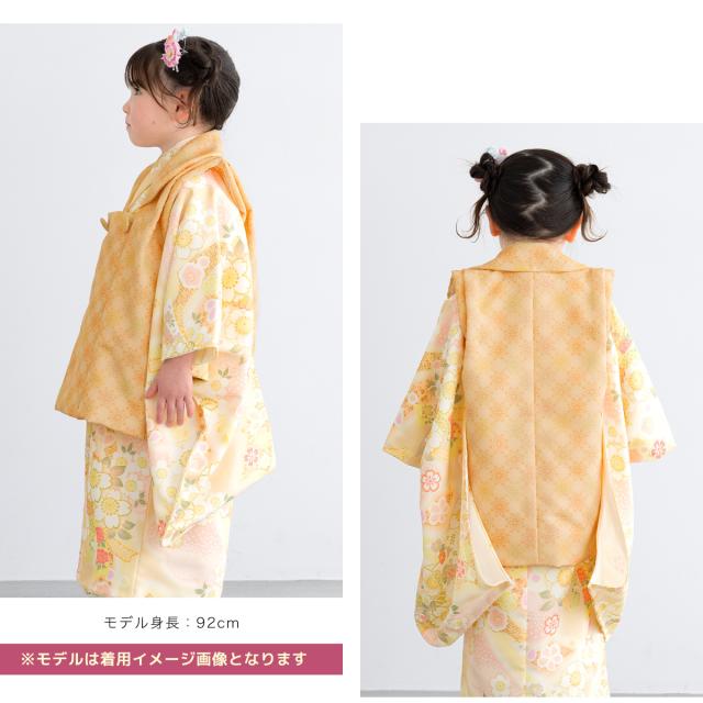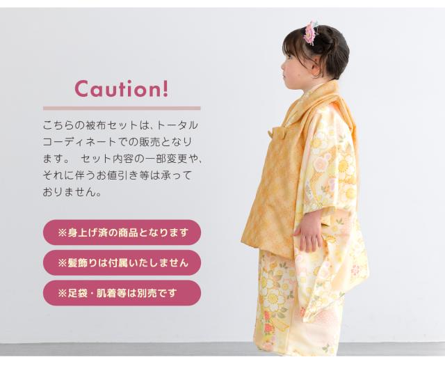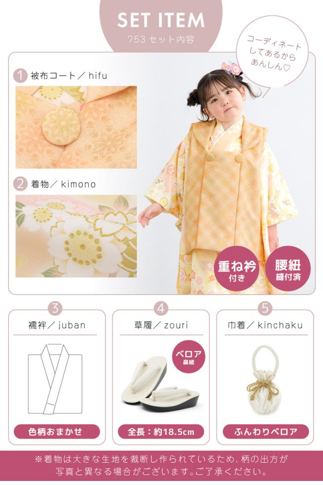 被布着物セット 七五三 三歳 女の子 着物 被布 販売 被布コート 襦袢 草履 セット オレンジ 橙 黄 唐花 束ね熨斗 桜 花柄 レトロ モダン コーディネート済み 可愛い 753 女児 送料無料