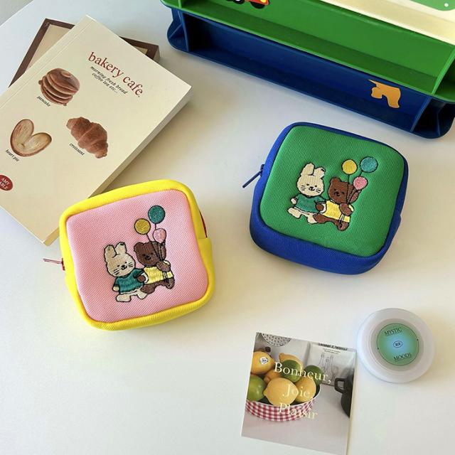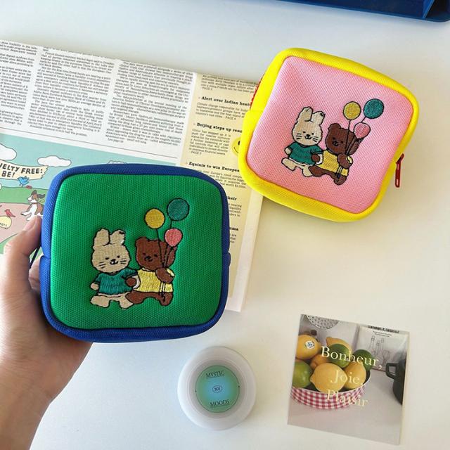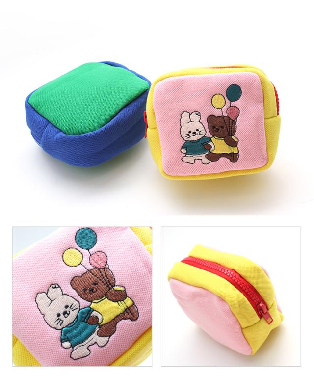 新作 選べる2カラーアニマル刺繍スクエアミニポーチ レディース マルチポーチ ミニポーチ 小物入れ 小さめ 旅行 小物ポーチ 化粧ポーチ コスメ 収納 マチあり おしゃれ かわいい 可愛い 大人 キッズ 子供 女の子
