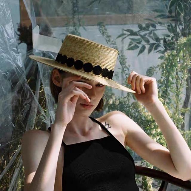 レースリボンが大人可愛いカンカン帽