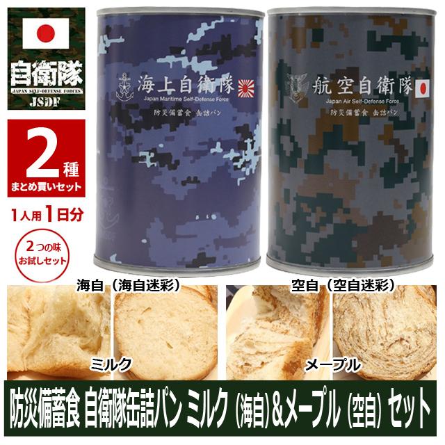 防災備蓄食 自衛隊缶詰パン ミルク(海自)&メープル(空自)2種セット 2缶組 非常食 長期保存 5年 常温 国産 日本製