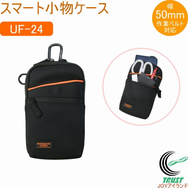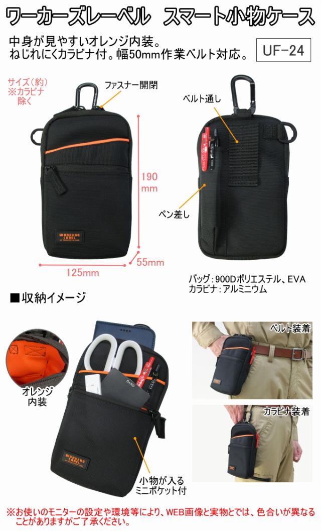 ワーカーズレーベル スマート小物ケース UF-24 バック ポーチ 携帯小物入れ 腰袋 作業ポーチ 工具差し ウエストポーチ 作業道具入れ 小物入れ 収納 軽量 オレンジ内装 ミニポケット付き スマートフォン カラビナ付 ベルト通し 50mm幅 ブラック 中林製作所 冒険倶楽部