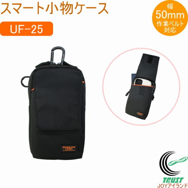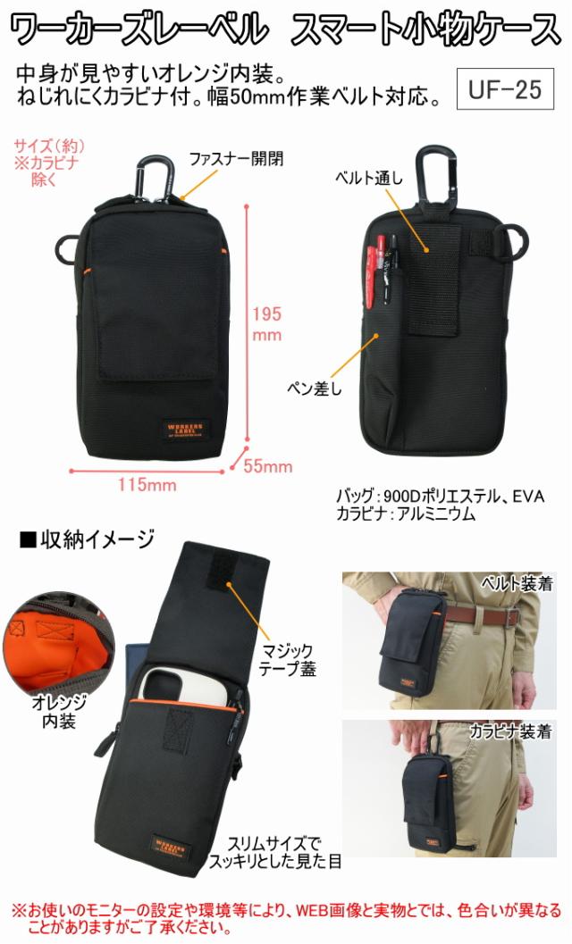 ワーカーズレーベル スマート小物ケース UF-25 バック ポーチ 携帯小物入れ 腰袋 作業ポーチ 工具差し ウエストポーチ 作業道具入れ 小物入れ 収納 軽量 オレンジ内装 スマートフォン カラビナ付 ベルト通し 50mm幅 ブラック 中林製作所 冒険倶楽部