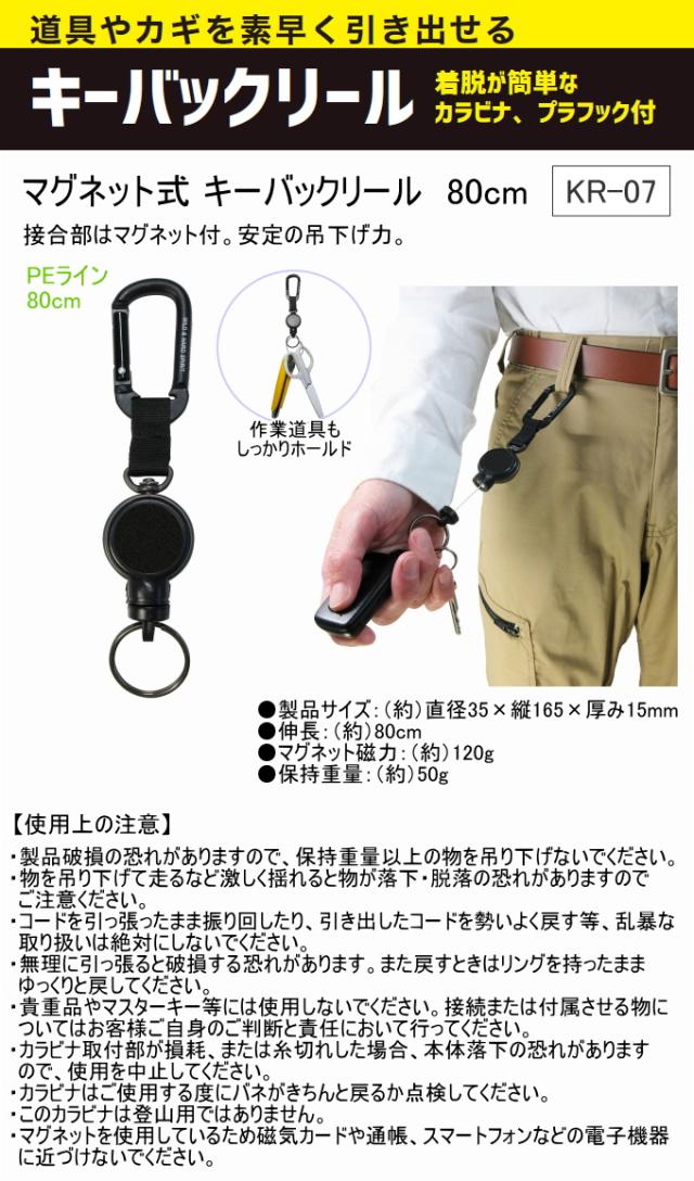 マグネット式 キーバックリール 80cm KR-07 鍵 カギ キーバックリール カラビナ付き マグネット式 ツール 作業ツール 小型ライト 携帯 便利グッズ ネコポス対応 中林製作所