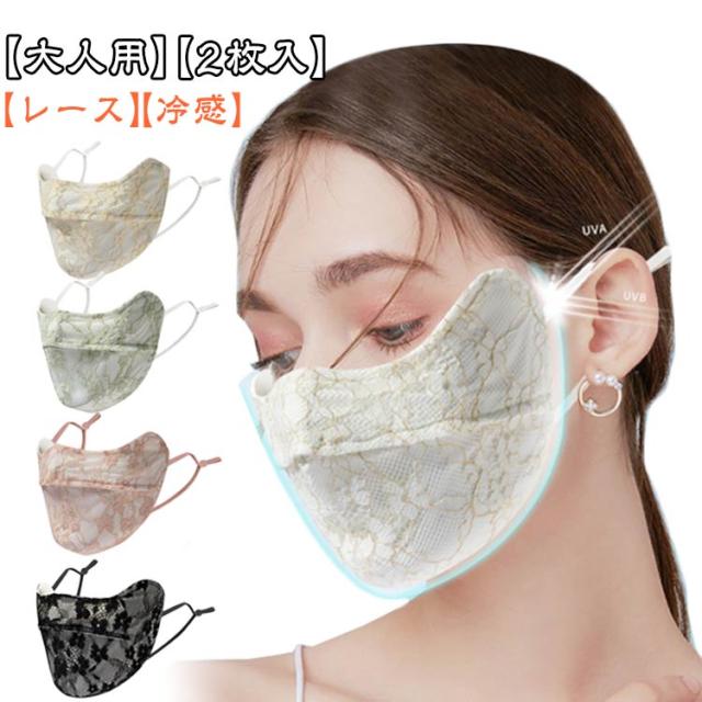 結婚式 冷感 夏 2枚入 レースマスク 夏マスク マスク 大人用 お嬢様風 日焼け防止 花粉対策 コスプレ レース UVカット レース 夏用 ハロウィン イベント 紫外線対策 仮装 パーティー 学園祭 ひんやり 軽量 無地 ランニング スポーツ