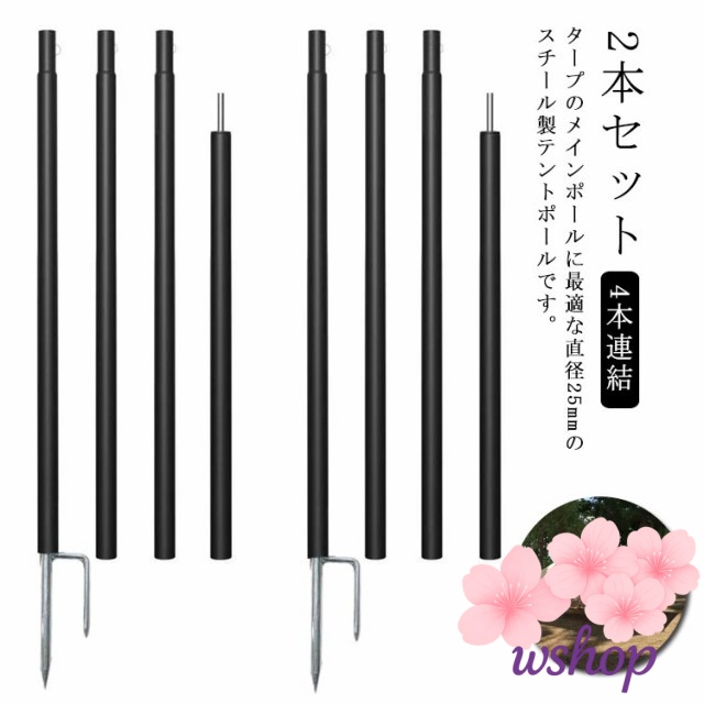 【wshop】テントポール スチール製テントポール 2本セット 4本連結 240cm 直径25mm 分割式 スチール メインポール タープポール ポール テント ワンタッチテント タープ タープテント ドームテント の 日よけ 収納袋付き