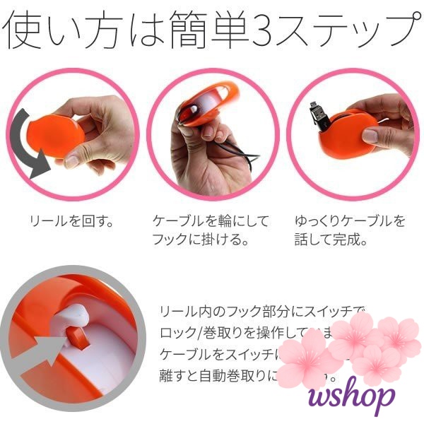 【wshop】コードリール ケーブルホルダー イヤホンや充電ケーブルの巻取り収納2.0mまで収納