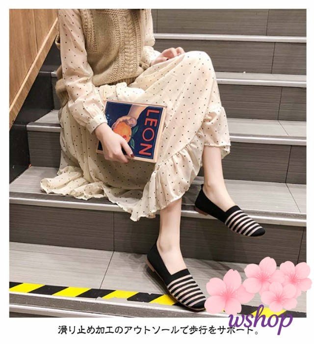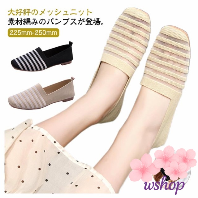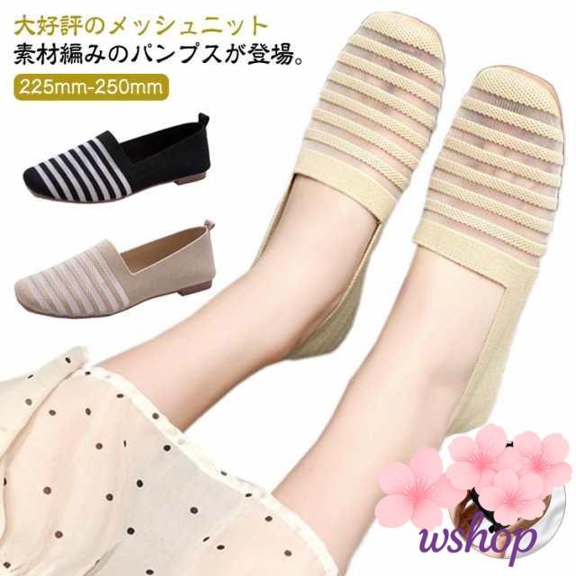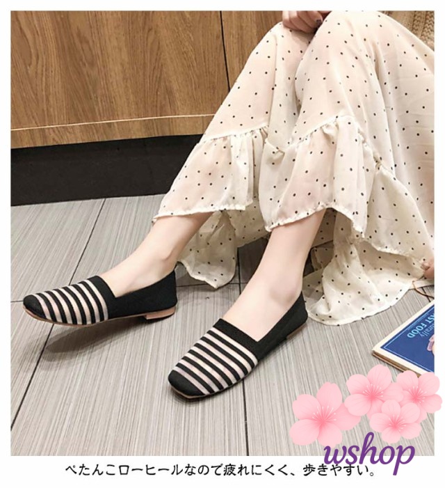 秋の新作特集 ギフトにも最適 ペタンコ 【wshop】ニットパンプス 透け感 秋 バレエシューズ 折りたたみ ランキング常連 スリッポン レディース フラットシューズ ローヒール ボーダー 話題商品 携帯スリッパ 春夏 送料無料 今だけ パンプス 送料無料実施中