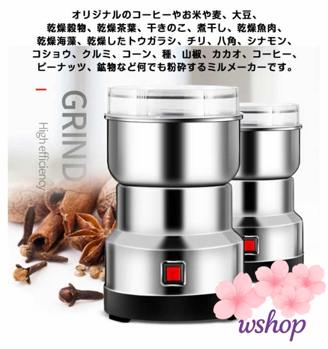 【wshop】電動製粉機 製粉機 製粉器 家庭用 電動 ミルミキサー コーヒーミル ミルメーカー ステンレス 電動ミル グラインダー 小型 軽量 微粉末 米粉高速乾燥製粉器 家庭用 業務用 粉砕機 ミルミキサー お手入れ簡単